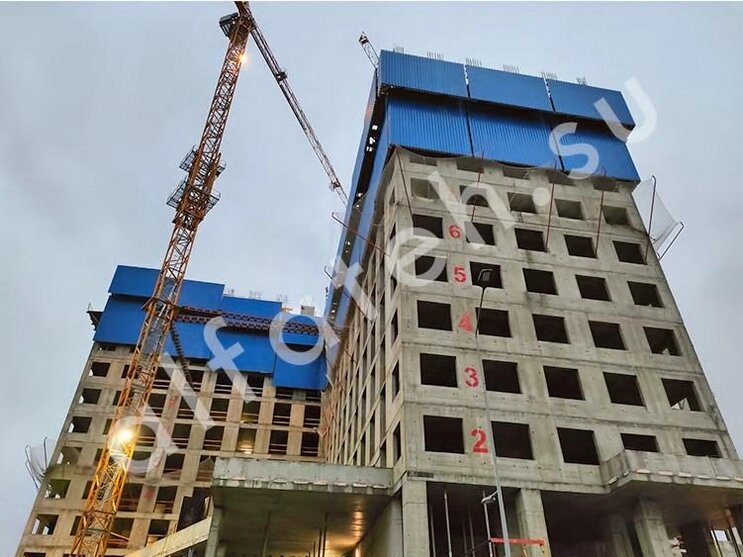 Экран начинает работать — рабочие могут безопасно находиться на монтажном горизонте. По мере роста здания экран поднимают на следующий этаж.