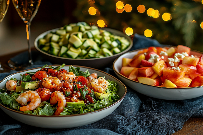 Каждая хозяйка мечтает о том, чтобы новогодний стол был одновременно изысканным и легким, и при этом не требовал проведения всего праздника на кухне. Достичь этого реально без многочасовых кулинарных подвигов и огромного списка продуктов. Всего три салата, которые готовятся очень быстро, способны создать отличное праздничное настроение. Они привлекательно выглядят, отличаются свежим вкусом и прекрасно сочетаются с шампанским, не создавая тяжести в желудке перед основным блюдом. Это тот случай, когда простота приготовления и скорость становятся символами настоящего праздника, позволяя вам уделить больше времени общению с семьей и загадыванию желаний под бой курантов. Первый салат – «Изумрудный» – с авокадо и креветками. Вам понадобится: 2 спелых авокадо, 200 г очищенных отварных креветок, 1 свежий огурец, немного руколы, сок лайма, оливковое масло и соль. Авокадо и огурец нарежьте небольшими кубиками, соедините с креветками и руколой, заправьте смесью сока лайма и оливкового масла. Вт