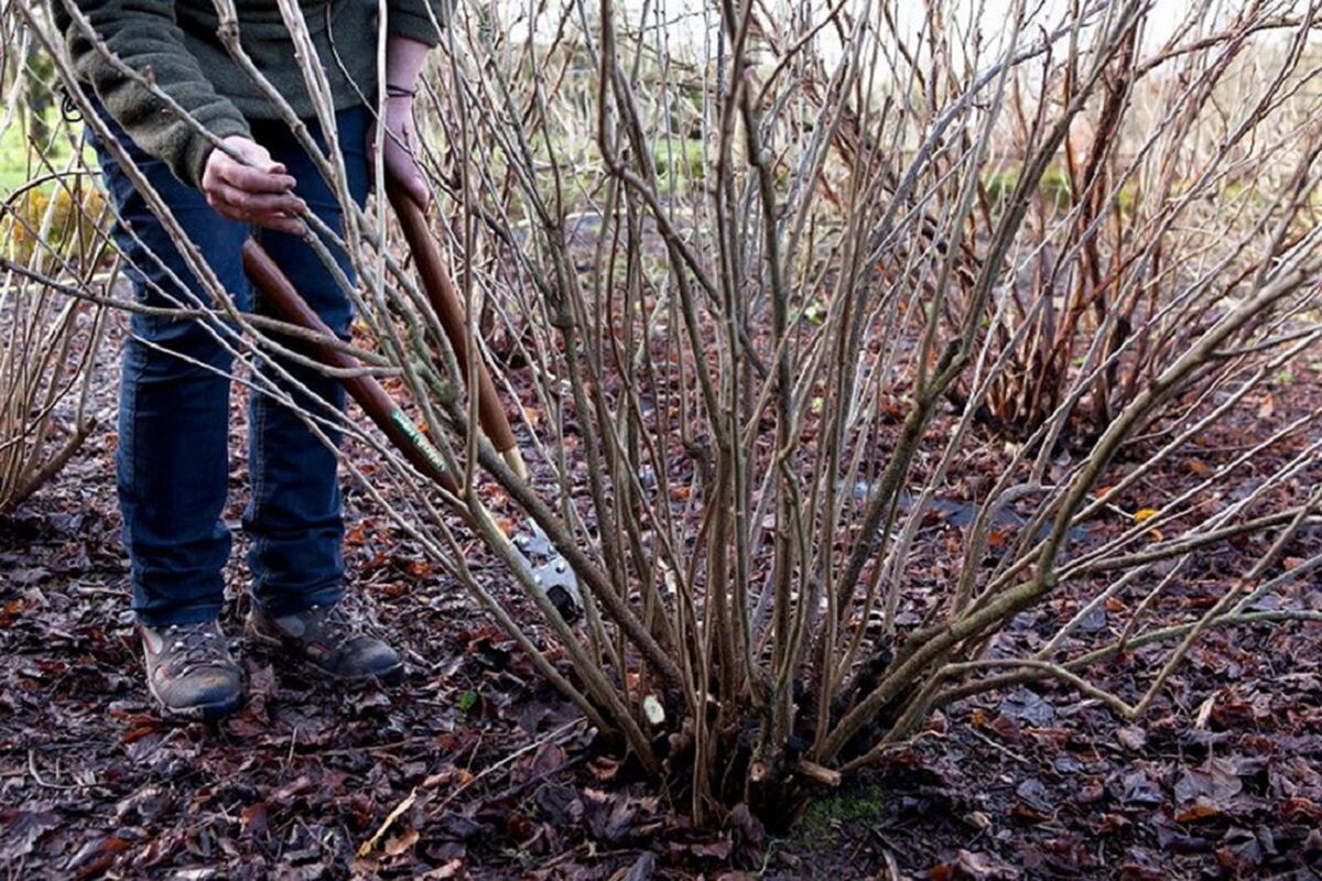 Каждую осень удаляйте не более трети старых веток. Начните с засохших и больных, потом переходите на неправильно растущие. Ветки режьте у самой земли. Спилы присыпьте золой — это защитит от инфекций.
