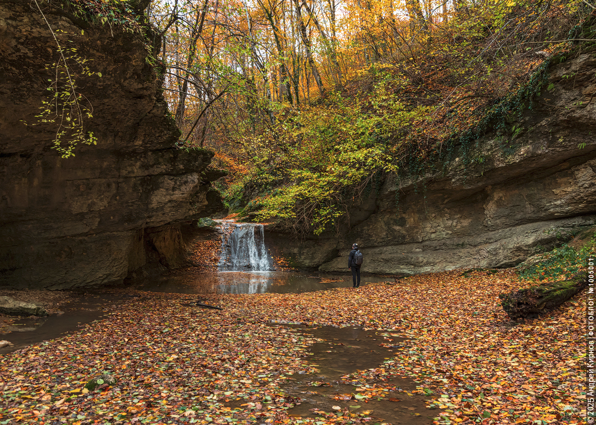 Второй водопад, как я понимаю, неплохо освещается в солнечный день и, похоже, что именно в его чаше отдельные туристы даже купаются. Мы же просто созерцали, дышали запахом осеннего леса, пытались перекричать шум воды, чтобы услышать друг друга, и вообще наслаждались моментом и местом.