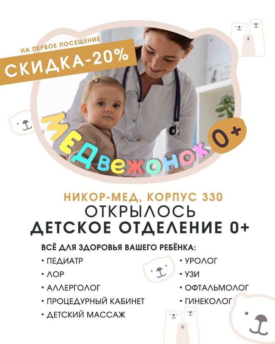 Жителям Зеленограда сейчас стало спокойнее заботиться о здоровье детей: в медицинском центре «Никор-Мед» открылось новое детское отделение — «МЕДвежонок». Работает оно в корпусе 330, и уже в первые недели видно, что формат пришёлся родителям по душе. Здесь собрали все основные направления, которые обычно приходится искать по разным адресам. Педиатр, ЛОР, уролог, аллерголог, офтальмолог, гинеколог — запись открыта каждый день. На месте есть процедурный кабинет, детский массаж и современное УЗИ. По сути, это новый удобный маршрут для родителей, у которых нет лишних часов на поездки по клиникам. И важная новость для тех, кто планировал записаться: до 30 декабря на первичный прием действует скидка 20%. Адрес: Зеленоград, корпус 330, yandex.maps