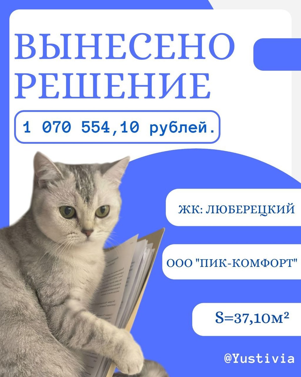 📘Взыскание компенсации за ущерб, причинённый заливом ➿➿➿➿➿➿➿➿ Застройщик: ООО "ПИК-КОМФОРТ" ЖК: ЛЮБЕРЕЦКИЙ Площадь - 37,10 м² Суд: Люберецкий городской суд Московской области Судья: Савинова М.Н. Дело: № 2-14017/2025 ➿➿➿➿➿➿➿➿➿ Взысканные суммы: ➡️Ущерб от залива: 641 000; ➡️Штраф: 325 500; ➡️Моральный вред: 44 600; ➡️Суд. расходы: 59 454,10. ➿➿➿➿➿➿➿➿➿ 💸Итого в пользу клиента: 1 070 554,10 рублей. ❤️Приёмка квартиры и строительно-техническая экспертиза – за наш счет! Юстивия – мы на вашей стороне в борьбе за справедливость!🆗 ➿➿➿➿➿➿➿➿ 📞+7(936)333-33-48 ✅@Yustivia 🌐yustivia.ru