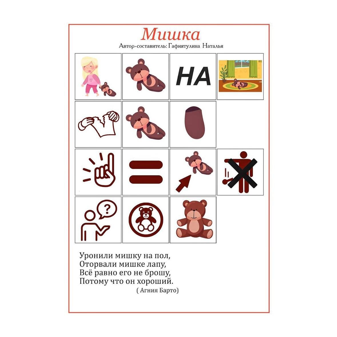 Как только ребёнок начинает говорить фразами — я подключаю стихи. И вот почему это работает Многие родители радуются первым фразам ребёнка и… не знают, какой следующий шаг сделать, чтобы речь продолжала развиваться. Я всегда говорю: «Фразы — это только начало. Дальше важно укреплять слухоречевую память и расширять словарный запас». И один из самых эффективных инструментов — заучивание коротких, простых стихотворений. Да-да, именно стихи помогают ребёнку: •тренировать слухоречевую память •развивать чувство ритма и слога •обогащать словарный запас •оформлять связную речь •лучше понимать структуру языка Но самое главное — это делается не через скучные задания, а через игру, повторение, эмоции и удовольствие. Почему я использую мнемотаблицы Когда ребёнок только начинает говорить фразами, длинные слова и последовательности всё ещё вызывают трудности. И вот здесь мнемотаблицы спасают занятие. Они позволяют малышу «увидеть» стих как набор образов, а значит: •облегчают запоминание •вкл