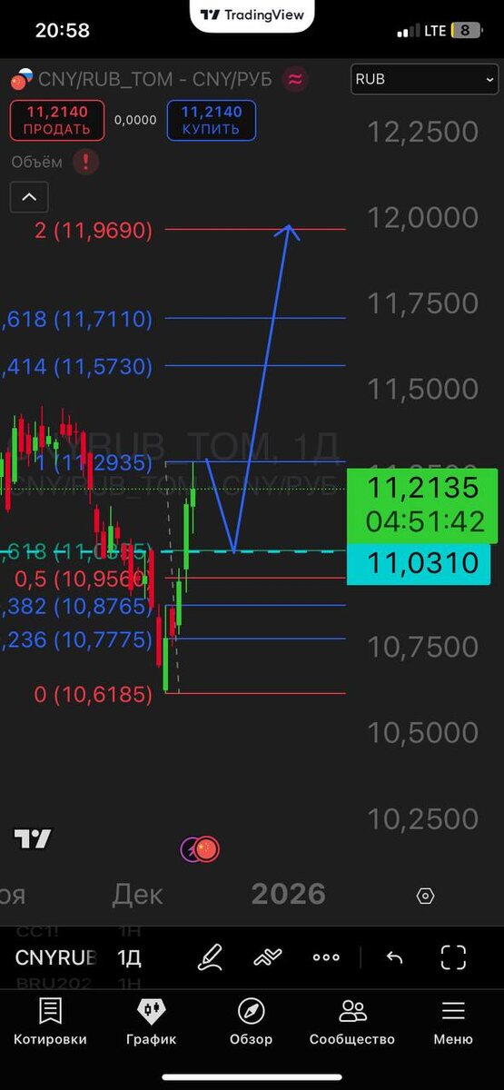 В ответ на пост Я уже писал про статистику самосбывающегося инструмента- сетки фибо. Ну так вот, для юаня, если он не провалится сильно ниже 11.03 то в самое ближайшее время встретим его на 12. Причем, если все пойдет так как я предлагаю, то это может быть очень быстро, и можно пирамидить