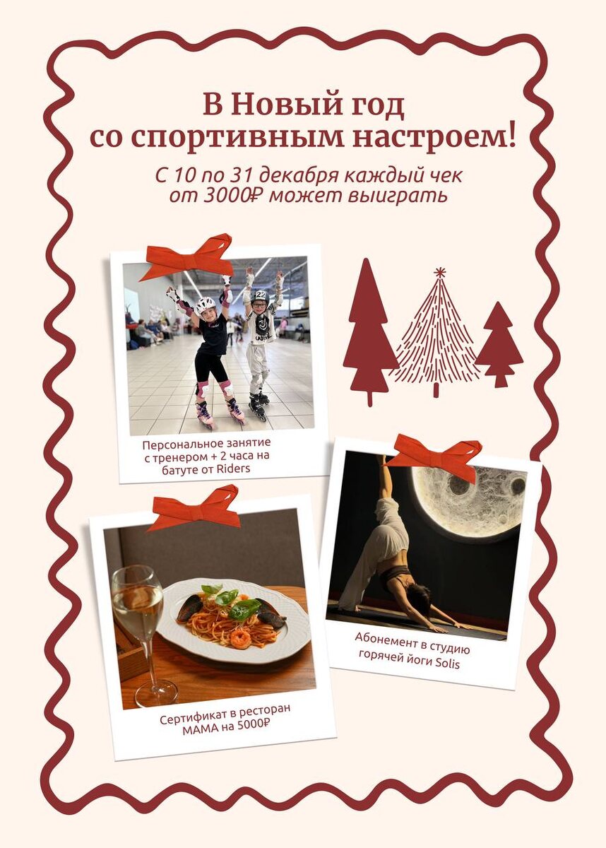 ΠΏΠΎΠ΄Π°ΡΠΊΠΎΠ² Ρ Π½Π°ΡΠΈΠΌΠΈ ΠΏΠ°ΡΡΠ½Π΅ΡΠ°ΠΌΠΈ. Π£ΡΠ°ΡΡΠ²ΡΠΉΡΠ΅ ΠΈ Π²ΡΠΈΠ³ΡΡΠ²Π°ΠΉΡΠ΅: βοΈ ΠΠ±ΠΎΠ½Π΅ΠΌΠ΅Π½Ρ Π½Π° ΠΌΠ΅ΡΡΡ ΡΠ΅Π½ΡΡ Π³ΠΎΡΡΡΠ΅ΠΉ ΠΉΠΎΠ³ΠΈ Solis β Π²ΡΠ΅ΠΌΡ Π΄Π»Ρ ΡΠ΅Π±Ρ. βοΈ Π‘Π΅ΡΡΠΈΡΠΈΠΊΠ°Ρ Π² ΡΠ΅ΡΡΠΎΡΠ°Π½ ΠΠΠΠ Π½Π° 5000β½ β Π΄Π»Ρ ΡΡΡΠ½ΠΎΠ³ΠΎ ΡΠ΅ΠΌΠ΅ΠΉΠ½ΠΎΠ³ΠΎ Π²Π΅ΡΠ΅ΡΠ°. βοΈ ΠΠ΅ΡΡΠΎΠ½Π°Π»ΡΠ½ΠΎΠ΅ Π·Π°Π½ΡΡΠΈΠ΅ Ρ ΡΡΠ΅Π½Π΅ΡΠΎΠΌ + 2 ΡΠ°ΡΠ° Π½Π° Π±Π°ΡΡΡΠ΅ ΠΎΡ Riders β ΡΡΠΎΠ±Ρ ΠΏΠΎΡΡΠ²ΡΡΠ²ΠΎΠ²Π°ΡΡ Π»ΡΠ³ΠΊΠΎΡΡΡ ΠΈ ΡΠ°Π΄ΠΎΡΡΡ Π΄Π²ΠΈΠΆΠ΅Π½ΠΈΡ. π₯ΠΡΠΎΠ³ΠΈ ΠΏΠΎΠ΄Π²Π΅Π΄ΡΠΌ Ρ 1 ΠΏΠΎ 5 ΡΠ½Π²Π°ΡΡ. Π Π΅ΡΡ ΠΊΠ°ΠΆΠ΄ΡΠΉ Π³ΠΎΡΡΡ ΡΠΌΠΎΠΆΠ΅Ρ Π·Π°Π±ΡΠ°ΡΡ ΠΌΠ°Π»Π΅Π½ΡΠΊΠΈΠΉ ΠΏΡΠΈΠ· ΠΏΠΎ ΡΠ΅ΠΊΡΠ΅ΡΠ½ΠΎΠΉ ΠΊΠ°ΡΡΠ΅ Ρ Π½Π°Ρ Π² ΡΠ΅Π½ΡΡΠ΅ Riders ΠΈ Π² ΠΊΠ°ΠΆΠ΄ΠΎΠΌ Π·Π°Π²Π΅Π΄Π΅Π½ΠΈΠΈ ΠΏΠ°ΡΡΠ½Π΅ΡΠΎΠ²! π ΠΠ‘ΠΠΠ ΠΠΠΠΠ 150 ΠΠ ΠΠΠΠ! Π£ΡΠ°ΡΡΠ²ΡΠΉΡΠ΅! ΠΠ΅ΡΠ°Π»ΠΈ ΠΏΠΎΠ΄ΡΠΊΠ°ΠΆΠ΅Ρ Π°Π΄ΠΌΠΈΠ½ΠΈΡΡΡΠ°ΡΠΎΡ! ΠΡΡΡΡ ΡΡΠΎΡ Π΄Π΅ΠΊΠ°Π±ΡΡ Π±ΡΠ΄Π΅Ρ Π΄ΠΎΠ±ΡΡΠΌ ΠΈ ΡΠ²Π΅ΡΠ»ΡΠΌ!π«Ά