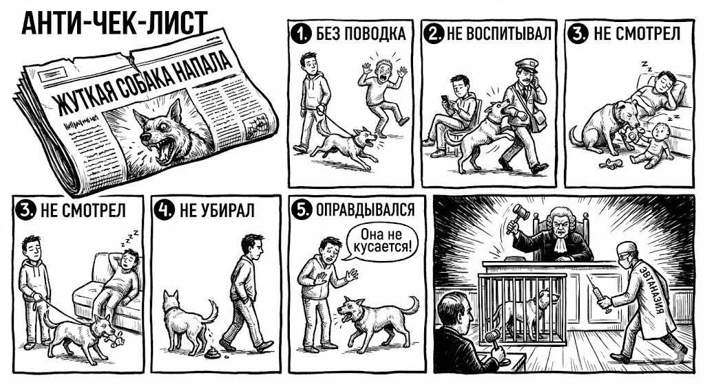 Не разговаривать с соседями, не объяснять, не показывать управляемость. Верить, что в случае чего собака вас «защитит».