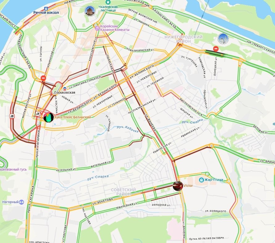 Нижний Новгород снова встал в пробках вечером 11 декабря. Ситуацию осложняют несколько ДТП. Об этом свидетельствуют данные сервиса «Яндекс. Пробки». Наиболее напряженная ситуация зафиксирована в центре города. Самые большие пробки образовались на улицах Звездинке, Ошарской, Варварской, Маслякова, Ильинской, Барминской, Грузинской, Горького, Пискунова. Также заторы наблюдаются на Нижневолжской набережной, улицах Полтавской и Родионова. Движение затруднено и на дорогах в Советском и Приокском районах. Серьезные пробки возникли на улицах Надежды Сусловой, Ванеева, Бекетова, Салганской, Горной, 40 лет Октября и Ларина. В заречной части движение затруднено на Московском и Сормовском шоссе, где произошли аварии, а также на улицах Новикова-Прибоя, Ярошенко, Циолковского, Старая Канава, Краснодонцев и около Московского вокзала. Пробки образовались и на Мызинском мосту в обе стороны. Остальные переправы более или менее свободны. Напомним, накануне утром также наблюдались большие пробки. Самые и