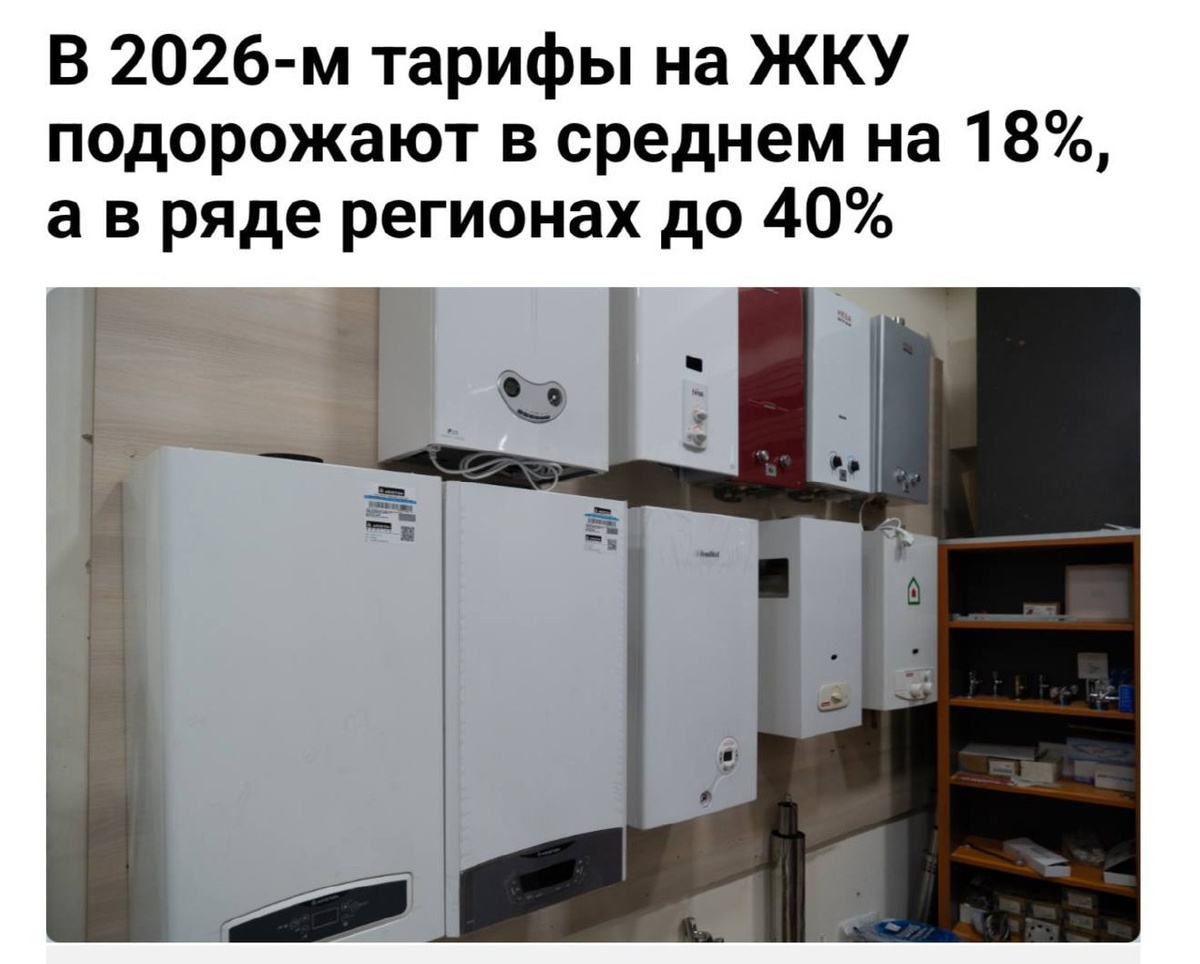 💸 Коммуналка подорожает в 2026-м В следующем году счета за ЖКУ вырастут в среднем на 18%. С 1 января тарифы поднимут на 1,7%, основное удорожание ждёт с 1 октября. В ряде регионов общий рост может превысить 40%, в других ограничится примерно 9–10%. Готовимся платить больше за те же батареи и воду.