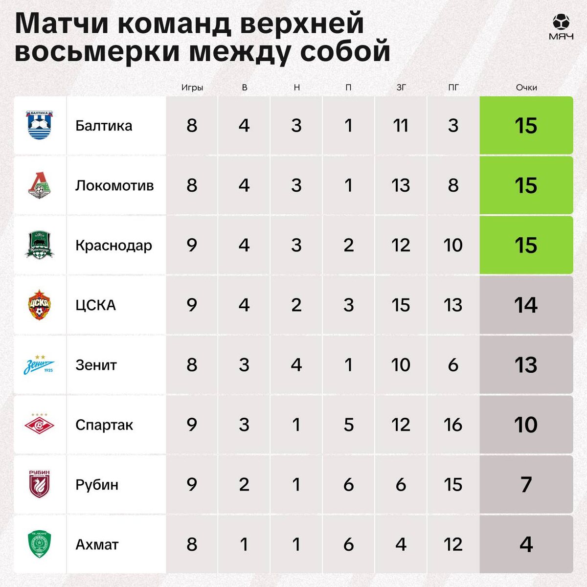 В матчах между топ-8 Рубин был бы предпоследним. Хуже только Ахмат.