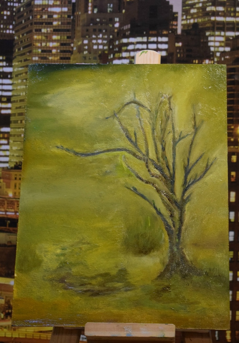 Мой не первый эксперимент с маслом и оргалитом: я дважды перерисовывала одно и то же дерево. Пыталась нарисовать дерево. Но что-то не складывалось, рисунок не складывался, каждый раз что-то исправляла, и всё не нравилось, дерево не нравилось. Стирала, начинала заново. Рисовала маслом на оргалите. Хочу сразу сказать, я просто любитель и не заканчивала художественную школу. — Стирания, переписывания, поиски… Вообще люблю поиск. И вот она — моя коряга. Но в ней есть характер, и в ней есть жизнь. Иногда замысел и результат могут быть далеки друг от друга, для того чтобы дойти до нужного результата или идеи, нужен поиск. Возможно, именно такой путь и должен был пройти этот образ. Это, видно, и был замысел, спрятанный в подсознании. Благодарю за внимание.🧡 Буду рада отклику.🧡