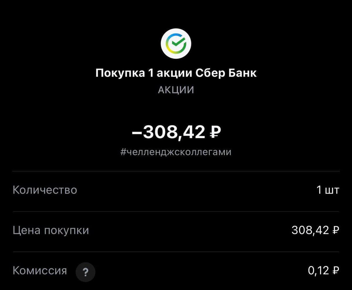 Всем привет! Покупка на сегодня #333 Статистика портфеля на стороннем сервисе, можно посмотреть по "ссылке" Напомню это челлендж с коллегами, каждый рабочий день пополняем брокерский счет на 250 рублей и инвестируем. Если возникли вопросы или есть не понимание, что делать. Задавайте «тут» Покупка #333 🟢 "Сбер" 308.42 rub #SBER 1 лот #каждыйсможет #челенджсколлегами ✈️ Стас Мироненко 📹Youtube | 📹Rutube