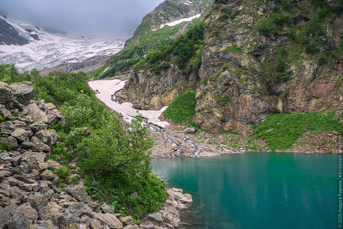 Но не суть. Меня в моменте больше беспокоили три вещи. Во-первых, начинало темнеть. В горах это случается очень быстро. Во-вторых, закапал дождик и сразу стало как-то холодно. А в-третьих, я не понимал как мне адекватно сфотографировать это озеро, прежде чем мы потопаем обратно.