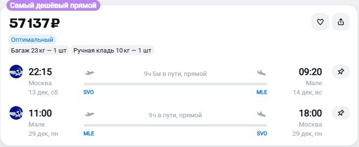 Отчего бы не слетать? Нашли относительно бюджетные варианты для тех, кто готов отправиться на тропические курорты в ближайшие дни и «на подольше», но Новый год предпочитает встречать дома. Билеты «Аэрофлота» из Москвы на Мальдивы с отправлением туда 13 декабря, обратно – 29-го обойдутся в 57 тыс. руб., включая багаж. А места на чартере Red Wings из российской столицы на Шри-Ланку можно забронировать за 49 тыс. руб. Наличие и цены мы проверяли в 18:00. @tourdom