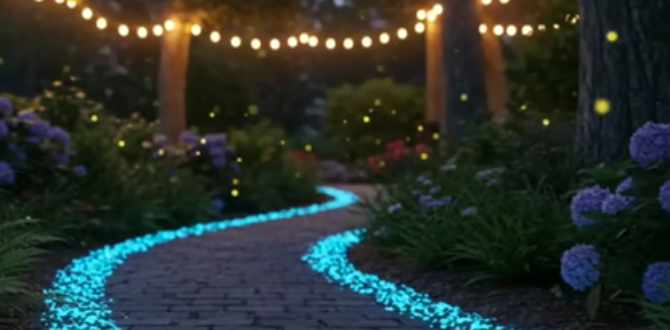 Эта идея похожа на первую, но делает акцент именно на создании полноценной световой дорожки. Светящиеся в темноте камешки один из самых простых вариантов автономного освещения сада. Днем они накапливают солнечный свет, ночью мягко светятся.