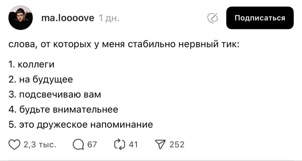 Коллеги, подсвечиваю вам. У кого синдром самозванца, для итогов года ТОП 🔥 1. Пиши фразу «в этом году я снова не»... перечисляй что там. 2. Продолжи каждый пункт с помощью «...зато...» В этом году я снова не ... зато ... Может не очень подойдёт для рабочих итогов🤣🤣🤣, но фокус на достижения точно поможет сместить. А у вас на какие слова нервный тик?) *Связаться со мной