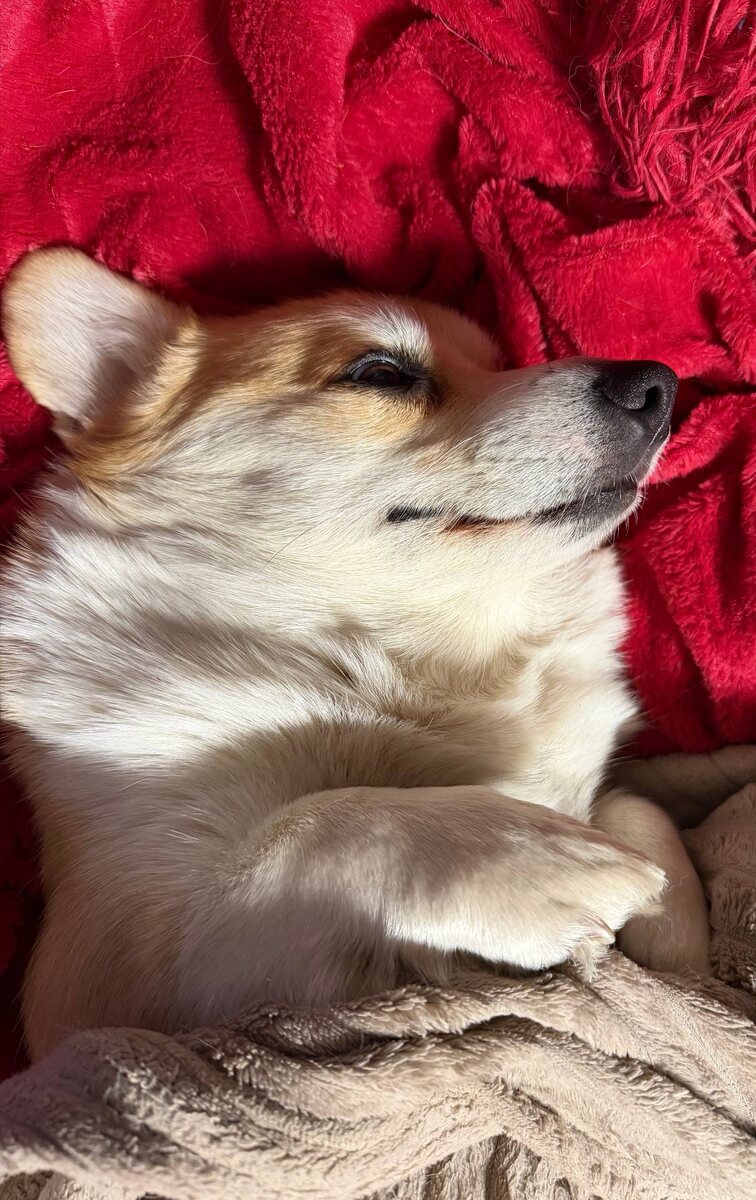 Максимальный чил))) Свила себе гнездо из пледов и рада🐶