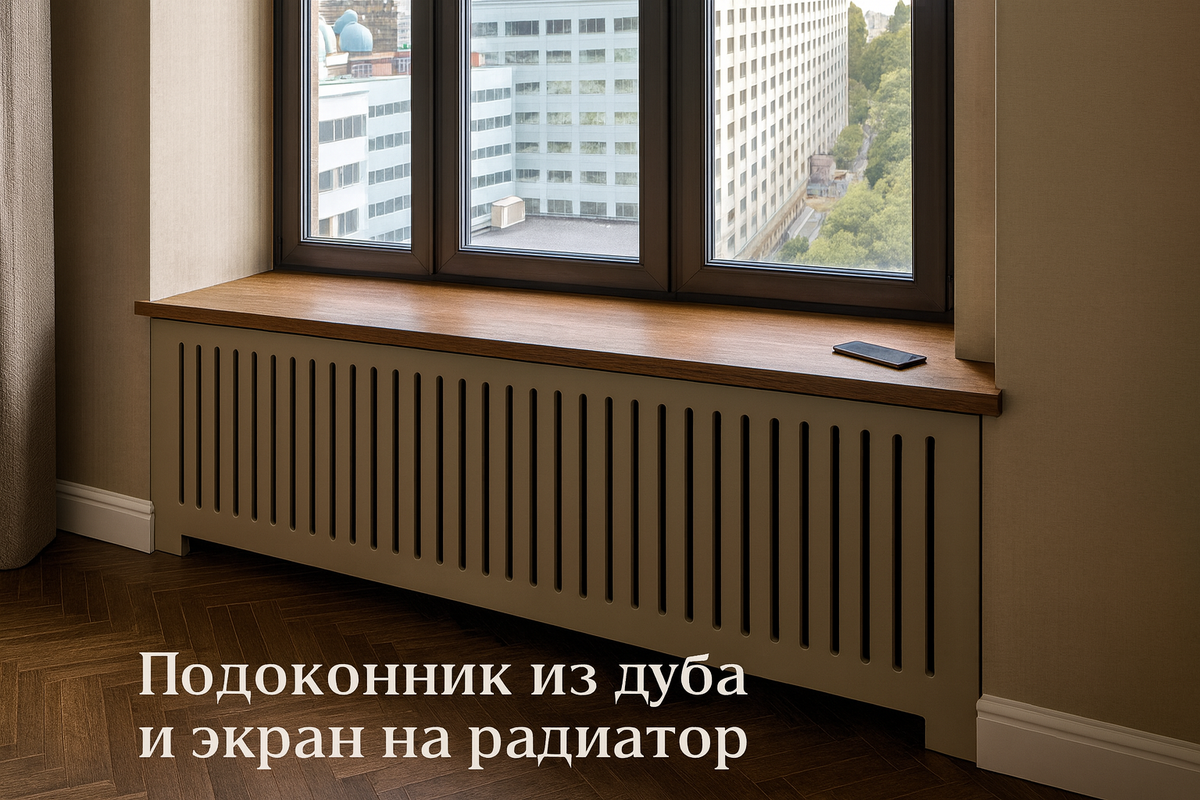 Деревянный подоконник — это не просто полка под окном, а функциональная интерьерная доска, которая может полностью преобразить пространство. А в сочетании с изящным экраном на радиатор, как в нашем московском проекте (подоконник 2100х600х40 мм, фанера шпонированная дубом; экран МДФ-эмаль), вы получаете не только красивый подоконник, но и законченное, гармоничное решение.