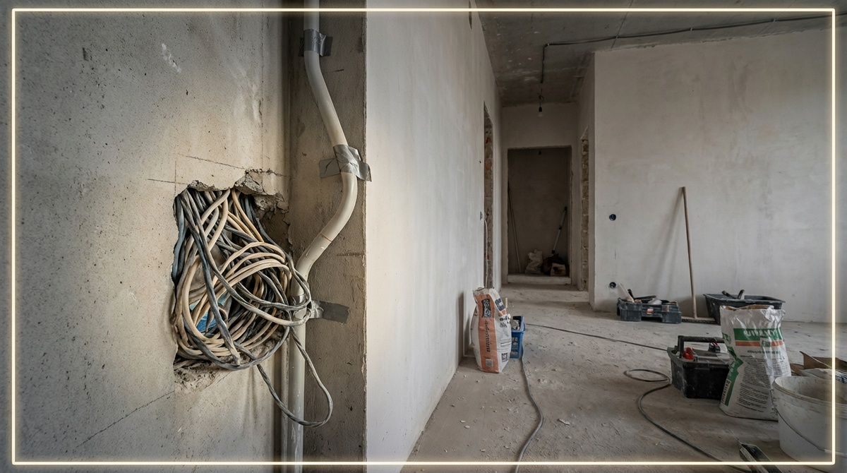 Я столько раз видел эту ошибку на объектах, что уже начинаю её угадывать по звуку шагов. Люди заходят в квартиру на черновом этапе, вроде всё аккуратно, стены ровные, стяжка гладкая, электрика разложена. И все такие спокойные. А я стою и понимаю, что им эта мелочь потом вылезет в сотни тысяч. Просто потому что никто не смотрит туда, где всё начинается. Речь про неправильное расположение трасс под свет и розетки. Не сам монтаж, а именно логика. Когда кабель выводят не в том месте, где потом будут шкафы, кухни, перегородки. Сначала кажется фигнёй. Типа ну перенесём. А потом начинается демонтаж стяжки, новый штроб, перенос распредкороба, удлинение контура. И ремонт превращается в хирургическую операцию по живому. Самое смешное, что об этой ошибке почти никто не говорит. На форумах обсуждают смеси и штукатурку, а вот схемы размещения света и розеток обходят стороной. Хотя именно они определяют, сколько денег улетит после того, как рабочие закончат черновой. Я однажды на объекте увидел, ка
