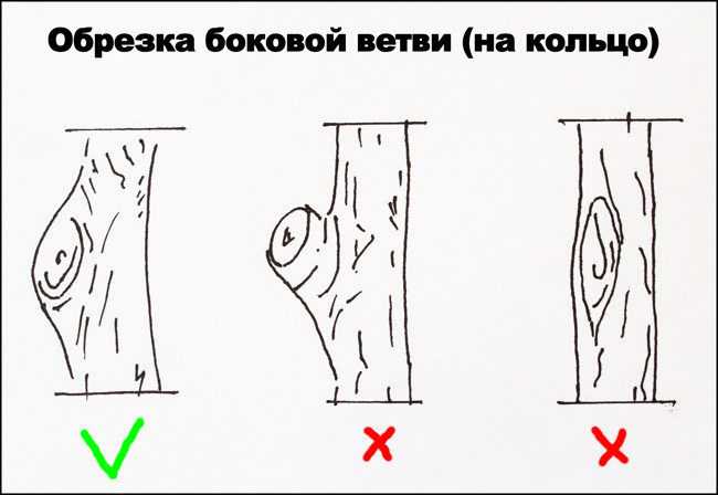 Какие ветки уделяем полностью, вырезая их ,, на кольцо "? ,,Удаление на кольцо" - это не форма среза или спила. Это срез по годичным кольцам, которые есть в основании любого побега.