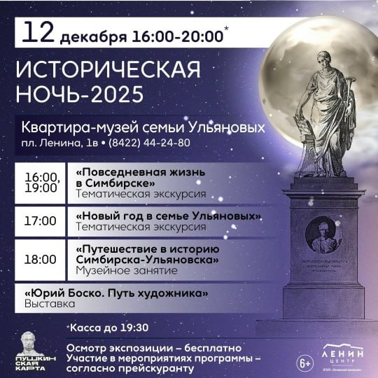 В Ленинском мемориале пройдет акция "Историческая ночь" 12 декабря с 16:00 до 20:00 в музеях Ленинского мемориалаульяновцы смогут принять участие в разнообразных мероприятиях. В этот вечер состоятся интересные выставки, экскурсии, занимательные мастер-классы, лекции и встречи-беседы. Осмотр экспозиции бесплатный, участие в мероприятиях - согласно прейскуранту. Ознакомиться с ним можно по ссылке. Фото: Ленинский мемориал Наш канал в MAX