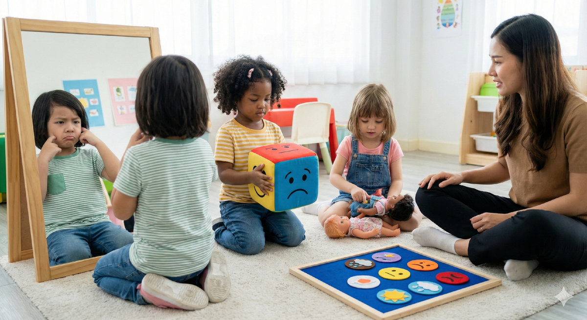Ваш четырехлетка рыдает, потому что ему дали «не ту» чашку? Шестилетка дерется, когда проигрывает в настольную игру? Добро пожаловать в мир дошкольных эмоций! Это возраст бурного развития, когда чувства часто «затапливают» разум. Именно сейчас самое время знакомить ребенка с понятием эмоционального интеллекта. Это не врожденный дар, а навык, который можно и нужно тренировать. И лучший способ делать это в 4–6 лет — конечно же, игра. Вот 7 игр, которые научат ребенка распознавать, называть эмоции и немного лучше ими управлять. Блок 1: Учимся распознавать и называть эмоции В этом возрасте дети часто путают страх и злость, грусть и обиду. Первая задача — расширить их «эмоциональный словарь». 1. Игра «Зеркало эмоций» 🪞 Самая простая и базовая игра. Что нужно: Большое зеркало и вы вдвоем. Как играть: Сядьте перед зеркалом. Попросите ребенка изобразить эмоцию: «Покажи мне злого тигра», «А теперь испуганного зайчика», «Покажи очень радостного человека, который получил подарок». Усложнение д