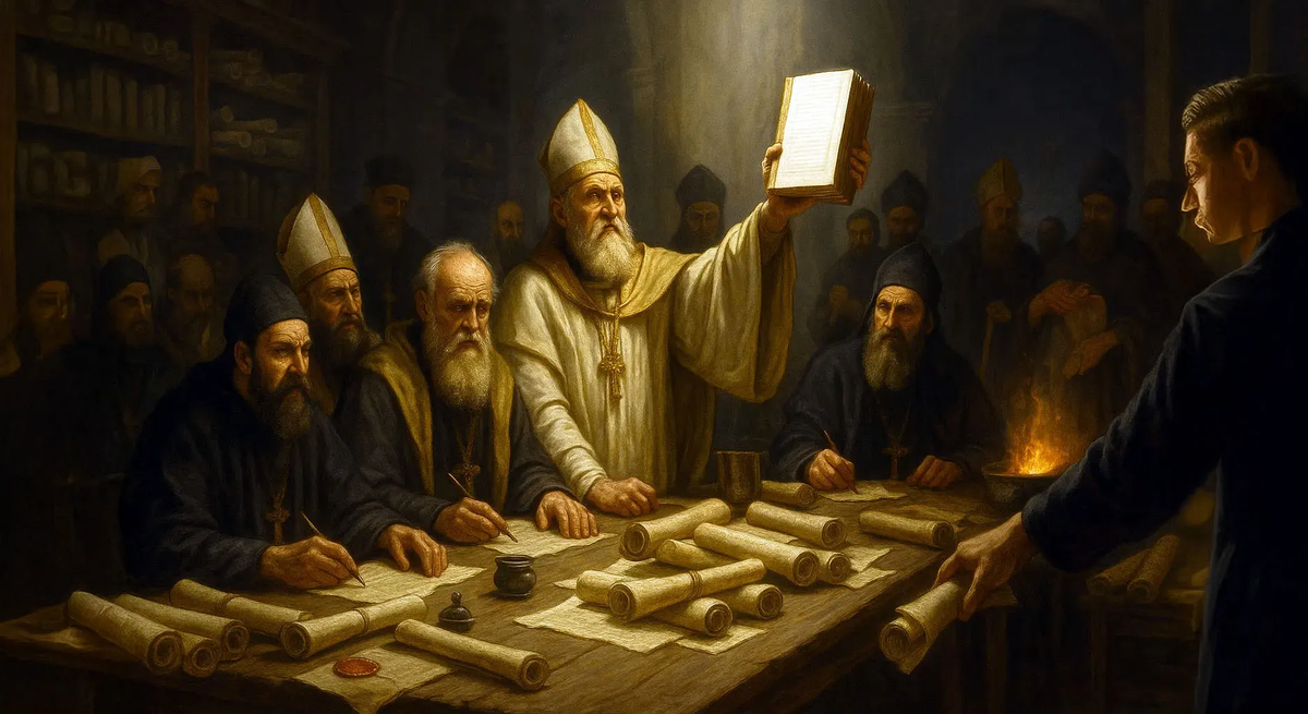 То, что спустя века превратилось в «Писание», возникло не благодаря небесной диктовке, а благодаря политическим интригам, спорам и кулуарным договорённостям между епископами и императорами.