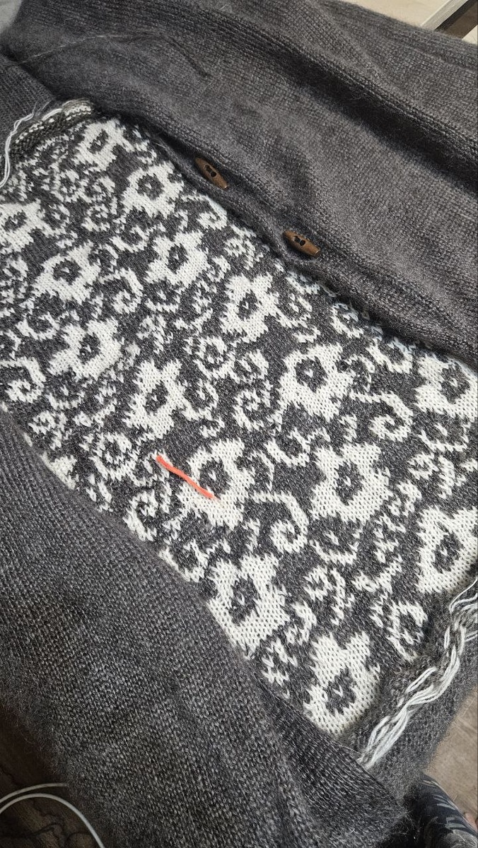 Вот такое весеннее пальто у нас будет Образец лежит поверх кардигана Красивенько смотрится, так мне кажется Это связано по той перфокарте, что я показывала Вязальные машины есть перфокарточные, а есть компьютерные, где можно внести в программу любой рисунок, хоть картину Васнецова и машина ее свяжет Не сама, конечно, а вязальщица свяжет на машине картину Васнецова И люди вяжут настоящие шедевры Но я на них не умею, хотя у меня такое чудо тоже есть, Просто нет времени сесть и освоить Пока меня устраивает перфокарточная, смотрите, какие красивые цветочки получились