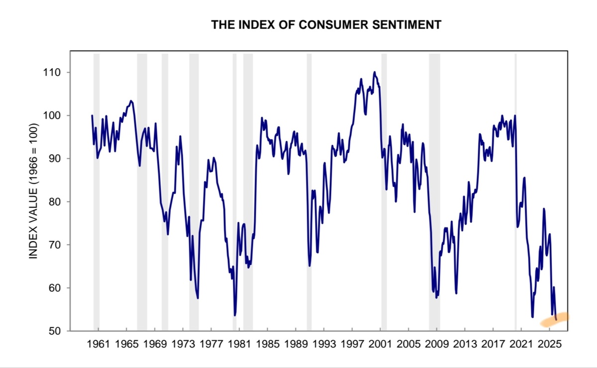 В ответ на пост Но есть нюанс: настроения работяг НИКОГДА не были на таком дне вне оф. рецессии Конечно, если не публиковать экономические данные и заливать все дефицитом/бумажными прибылями, то её можно просто игнорировать До поры до времени @marketheart