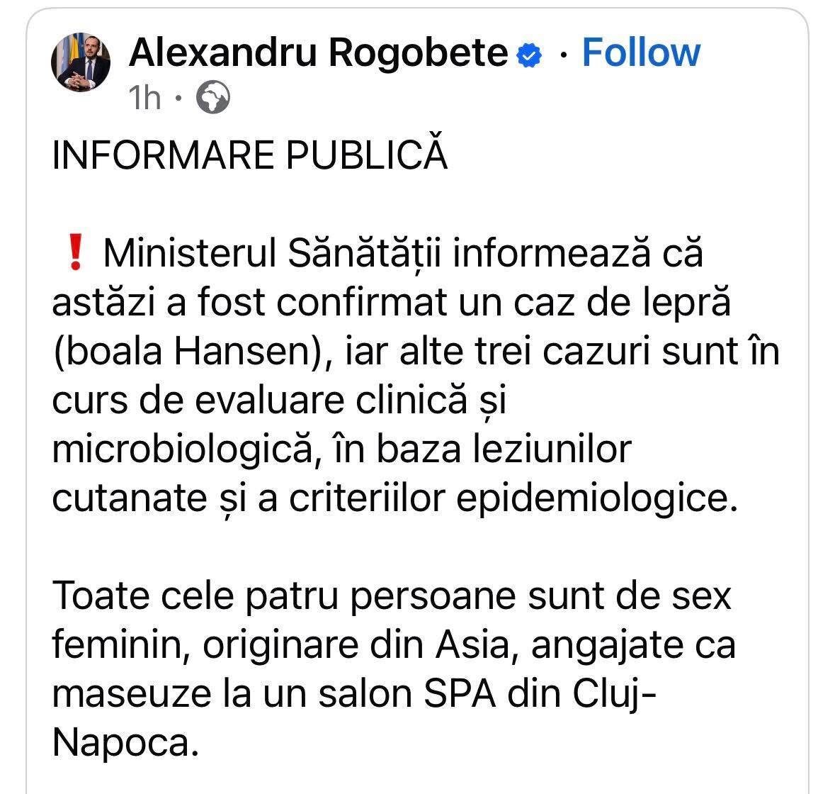☝️🇷🇴В Клуже выявлен случай проказы