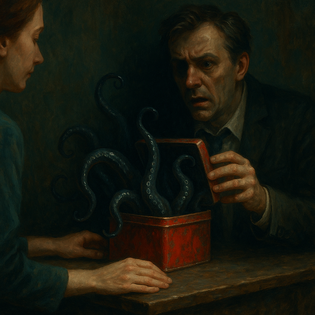 По мере дискуссии то на одном, то на другом лице можно было заметить отблеск дьявольского пламени в глазах. Кто-то демонстрировал клыки, у кого-то проявлялись когти, мелькали жуткие языки, а у кого-то роем змей на голове шевелились волосы. Но то были мелочи в сравнении с разворачивающимся клубком всевозможных щупалец. Каждое критическое высказывание превращалось в длинный гибкий отросток, который тянулся в сторону Олега. Никита Сергеевич каждый раз отмахивался от коллективных жалоб, приводя контраргументы. Он как будто серьезно прислушивался к этим бредням, кивал, давал понять, что - «да, действительно, понимаю ваше негодование, но в то же время…» и решительно парировал, твердо пресекая любые попытки продолжить обсуждение данного пункта. Финальное слово начальника будто ножом отрезало беспокойное щупальце, - и теперь куча их, поверженных и обездвиженных, покоилась на общем столе.
