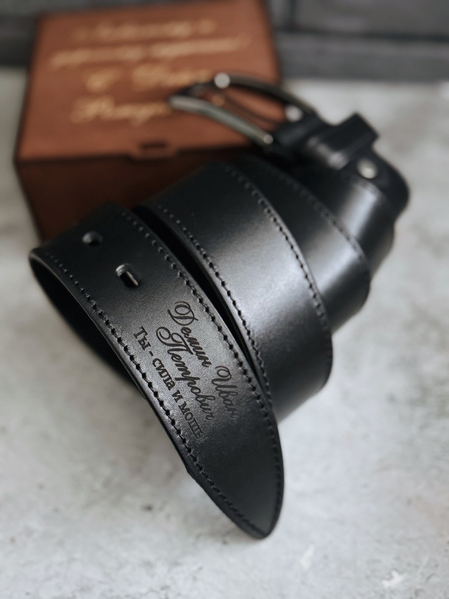 Ремень из 100% натуральной кожи ❤ Гравировка на выбор в подарок: ✔️Имя ✔️Инициалы ✔️Зодиак ✔️Любая ваша надпись 👌 Размеры (L-XXXL) Обязательно уточняйте при заказе Очень эффектный подарок для мужчины к любому празднику ! Ведь он подчеркнет его стиль и статус. Ваш мужчина точно его оценит : ✔100% натуральная кожа ✔Персональная гравировка рисунка или надписи ✔Подойдёт мужу, другу, брату, коллеге, словом абсолютно любому мужчине ✔Все ремни с регулируемой пряжкой, можно укоротить ✔Изготовление от 24 часов Стоимость подарочной коробочки под ремень - 500 р Можно составить отличный подарочный набор с различными аксессуарами 👌