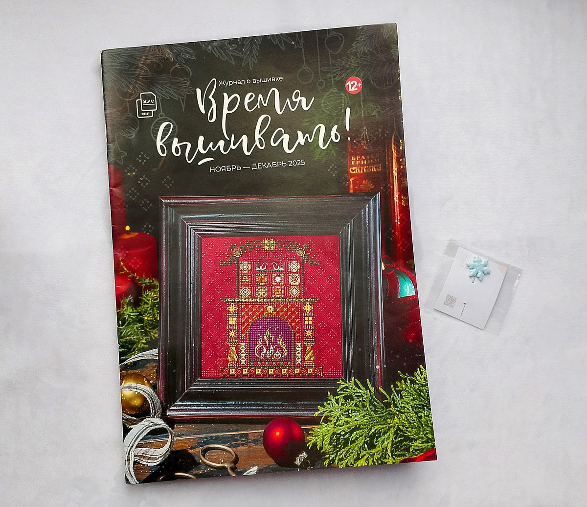 Выпуск за ноябрь — декабрь 2025 года посвящён зимним узорам. В нём 17 вышивальных схем на зимнюю, новогоднюю и католическо-рождественскую тему: пуансеттия с остролистом, ёлочные игрушки, лошади как символ следующего Китайского Нового года, зимние пейзажи в стиле примитив и многое другое. Разворот с содержанием взят из ВК-группы журнала: https://vk.com/vremyavishivat Многие идеи и даже отшивы для этого выпуска предложила Наталия Сорокина — гость этого номера и автор блога Natalie from Stitcher with Love. Например, она придумала подобрать схемы в трёх цветовых гаммах: красно-зелёной, сине-голубой и розово-фисташковой, — чтобы угодить вышивальщицам с разными вкусами, а вышивки подошли к разному интерьеру. Также Наталия выполнила дополнительные отшивы собственными нитками, не по ключу — таким образом она хотела напомнить, что можно не только чётко следовать ключу, но и экспериментировать с материалами, использовать свои запасы вместо покупки отсутствующих номеров DMC — и в итоге получить