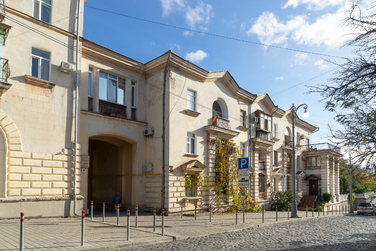 Дом № 28 дом - здание построено в 1912 году в стиле модерн петербургскими архитекторами-художниками В. Субботиным, С. П. Бургом для известного севастопольского зубного врача Рихтера. Трехэтажный особняк в стиле «модерн» словно бы вырастает из крутого склона центрального холма. Необыкновенно интересен декор переднего фасада, в нем символически зашифрована вся человеческая жизнь. Рихтер был не только успешным зубным врачом, но и творческим, любящим музыку человеком. А еще - председателем севастопольского музыкального общества, его супруга Юлия Александровна так же входила в свет этого общества.