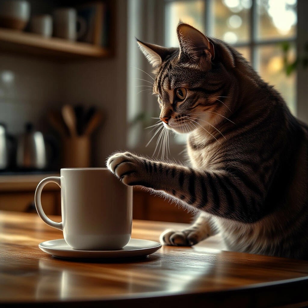 Чашка, ручка, телефон — всё летит на пол под холодным, оценивающим взглядом хищника. Вы вздрагиваете от шума, а ваш кот лишь медленно отводит лапу и смотрит на вас, как учёный, наблюдающий за результатом эксперимента. Вы списываете это на баловство или глупость? А зря. За каждым таким «полётом» стоит многовековая генетическая программа и трезвый, почти макиавеллиевский расчёт. 1. «Охота на дичь»: Тест-драйв для инстинктов Ваш стол для кота — не место для порядка. Это полигон, саванна в миниатюре. Неподвижная безделушка для вас — потенциальная «добыча» для него. Её падение имитирует поведение раненой птицы или мыши: резкое, непредсказуемое движение и шум. Кошка отрабатывает охотничий сценарий: «спугнуть — проследить траекторию — оценить результат». Это не баловство. Это ежедневная тренировка навыка, от которого когда-то зависела её жизнь. Скучающий домашний хищник находит в ваших вещах единственную возможность реализовать главный инстинкт. 2. Манипуляция 101: Гениальный способ привл