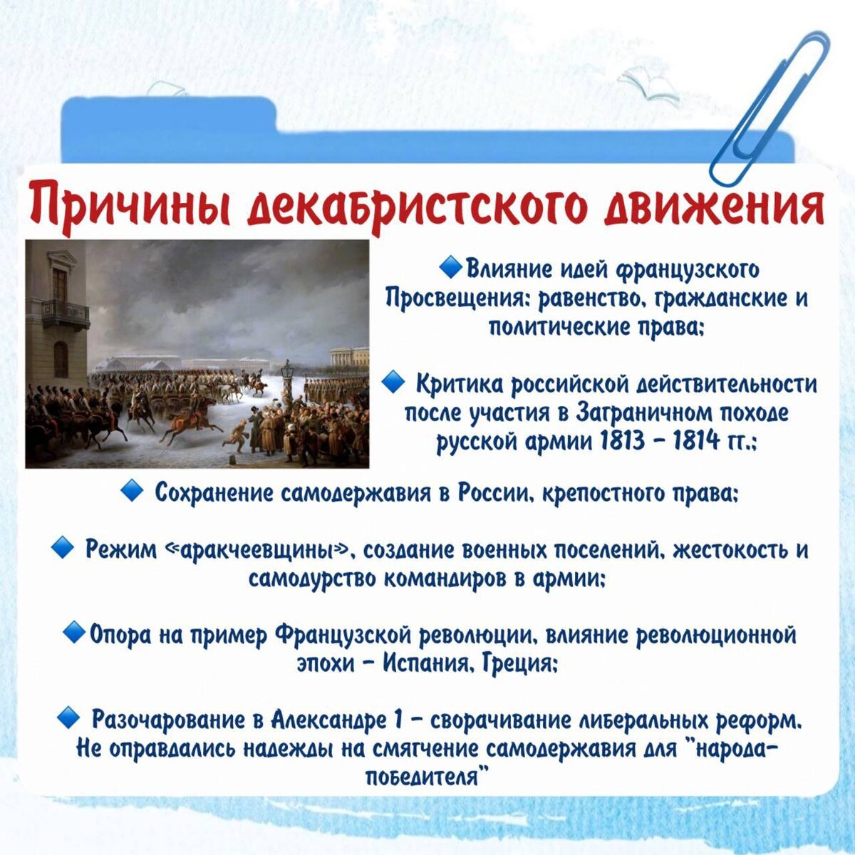 Делюсь карточкой с причинами восстания декабристов!
