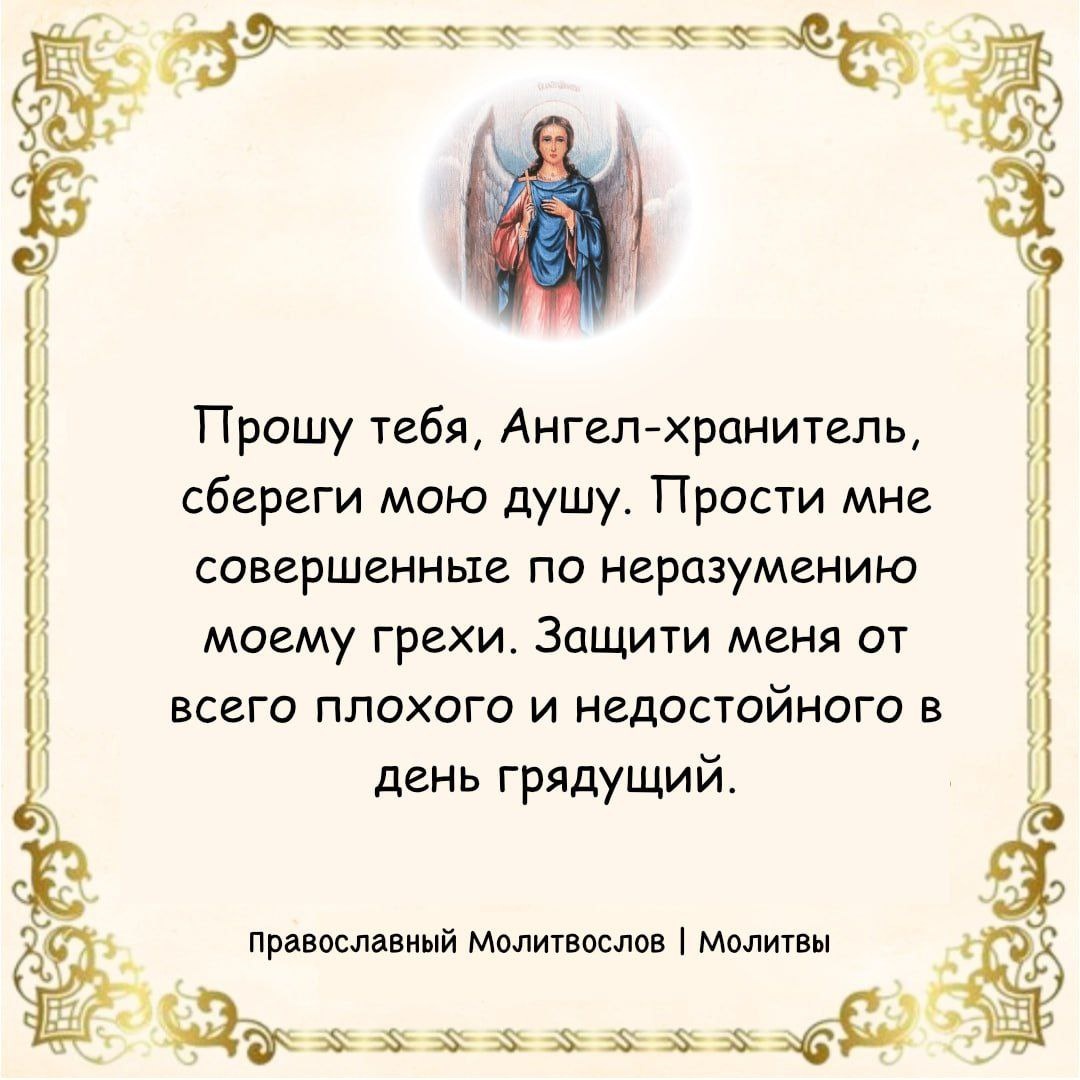 Прошу тебя, Ангел-хранитель, сбереги мою душу. Прости мне совершенные по неразумению моему грехи. Защити меня от всего плохого и недостойного в день грядущий.