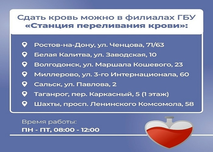 В Ростовской области 12 декабря проведут региональную акцию по сдаче крови