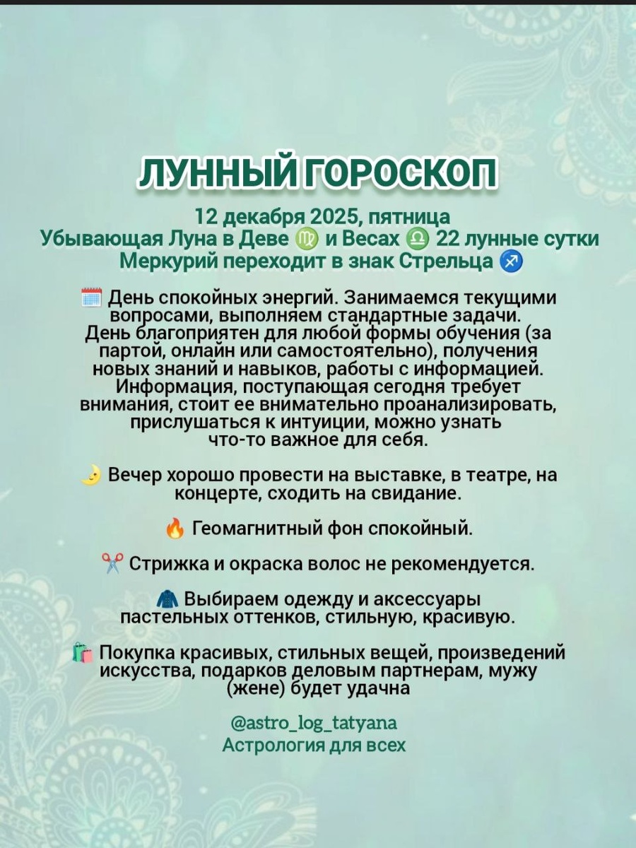 🟩🟩🟪🟩🟥🟪🟩🟦 на 12.12.2025 #лунныйгороскоп #гороскопнадень #астропрогноз