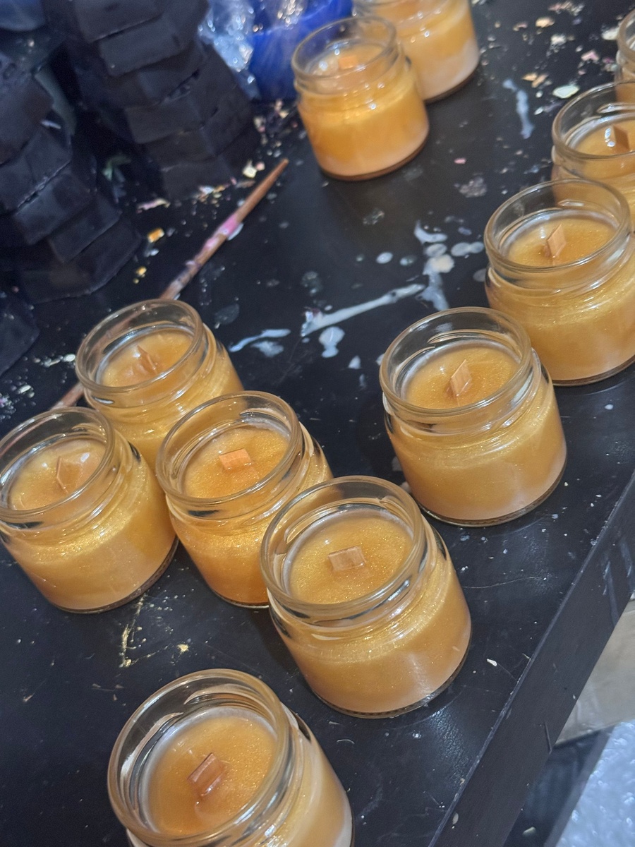 А вот и результат. Золотые свечи с деревянным фитилем стоят и остывают.