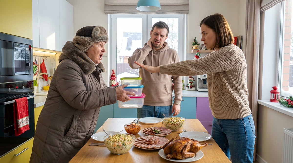 Андрей сидел, растерянно переводя взгляд с жены на мать. Вид такого количества пустых контейнеров его тоже, мягко говоря, шокировал. Он ожидал, что мама попросит завернуть кусочек торта или пару котлет. Но это был промышленный масштаб. Это был грабеж средь бела дня.