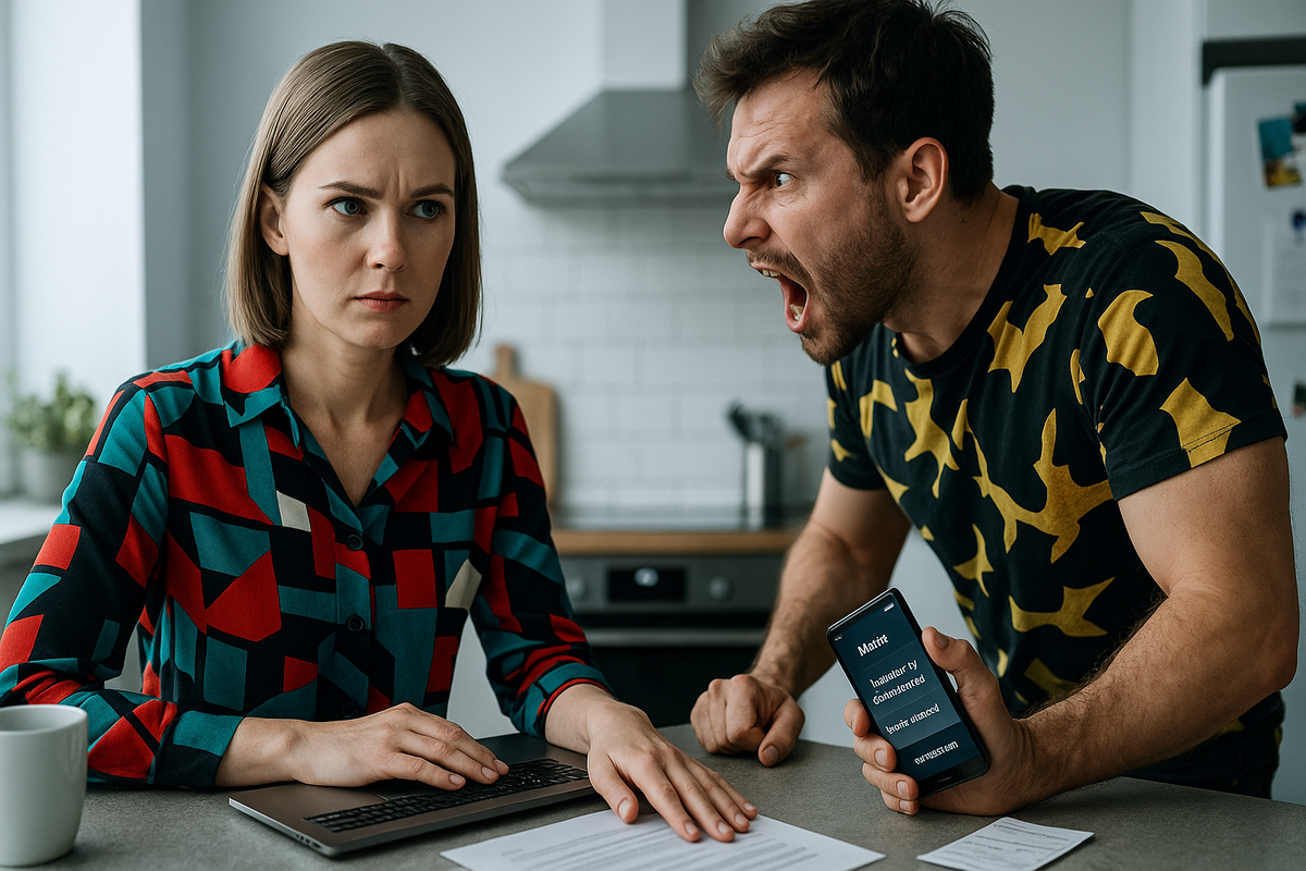 — Ах так?! — кричал он не своим голосом. — Ты закрыла доступ к деньгам?! Просто взяла и закрыла, не спросив меня?! А как же моя семья?!