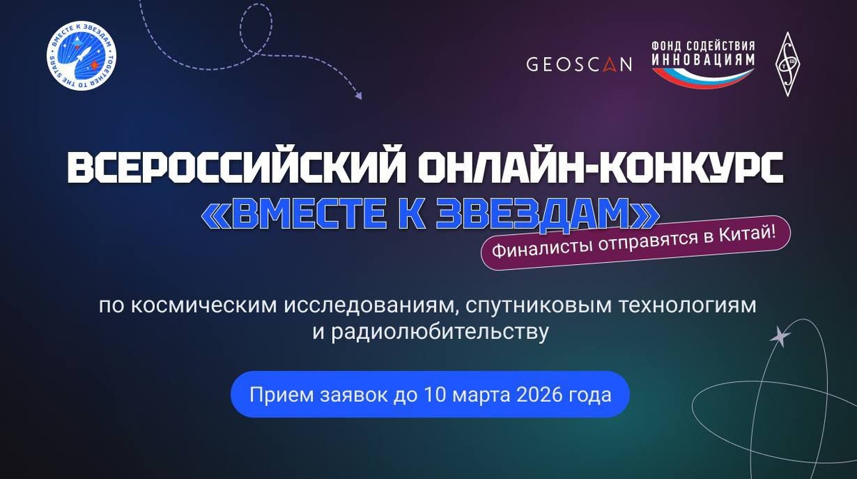 В России стартовал конкурс "Вместе к звездам", посвящённый популяризации космических исследований. К участию приглашаются школьники 8–10 классов, которые хотят попробовать себя в роли инженеров, исследователей и ученых. Организует конкурс команда инженеров и экспертов компании «Геоскан», которая создает малые космические аппараты, а грантовую поддержку предоставляет Фонд содействия инновациям. По словам устроителей, от участников конкурса требуется лишь интерес к космосу и желание разбираться в сложных вопросах, причём базовых знаний физики и английского достаточно. Этапы конкурса включают онлайн-тест по физике, астрономии и космическим технологиям, несколько более сложных задач на выбор (научное и инженерное направление) и онлайн-собеседование. Победителей "Вместе к звездам" ждёт участие в Летней космической смене в Санкт-Петербурге и шанс выиграть поездку в Китай. Организаторы отмечают, что участие в конкурсе и поездка бесплатны для финалистов, а после регистрации на сайте можно сра
