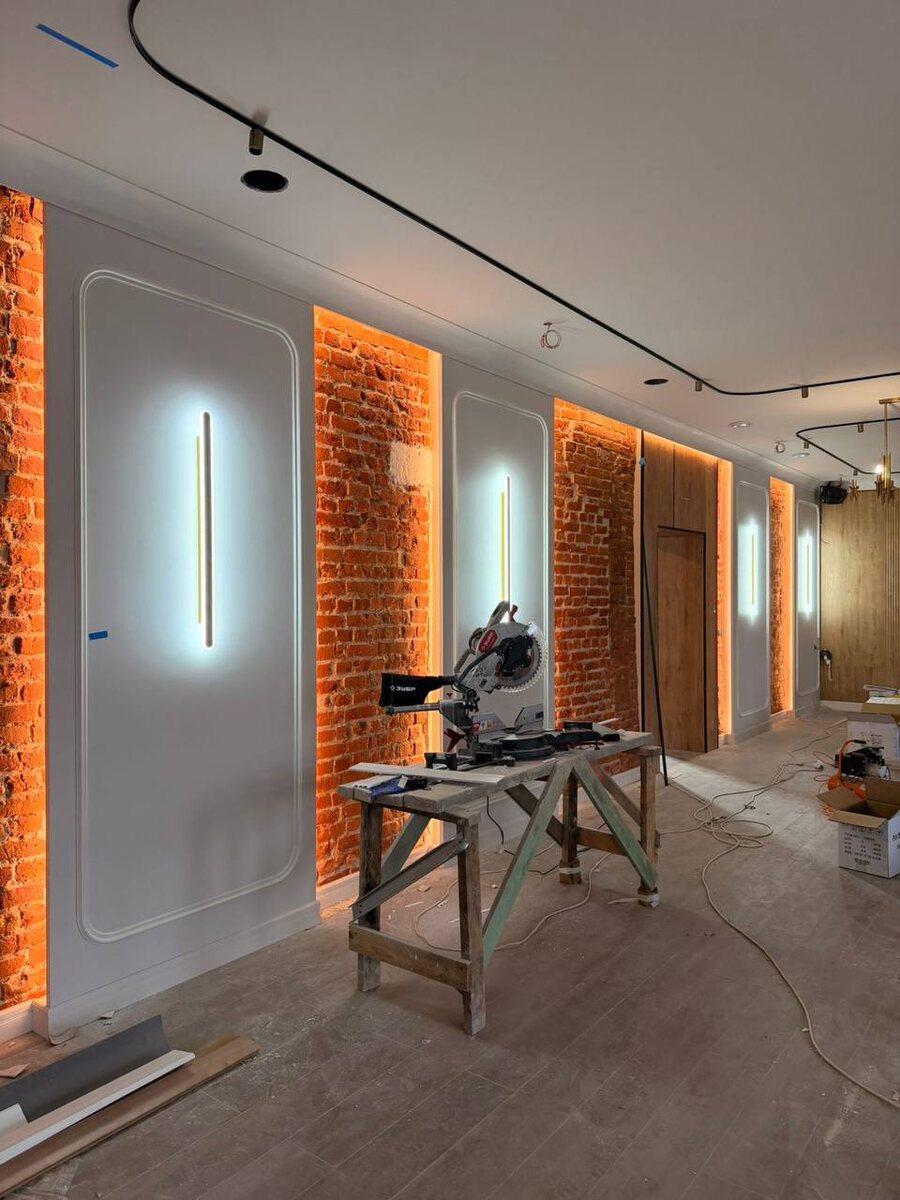 Использовались панели Orac, молдинги и углы Bello Deco, краска Milq.
