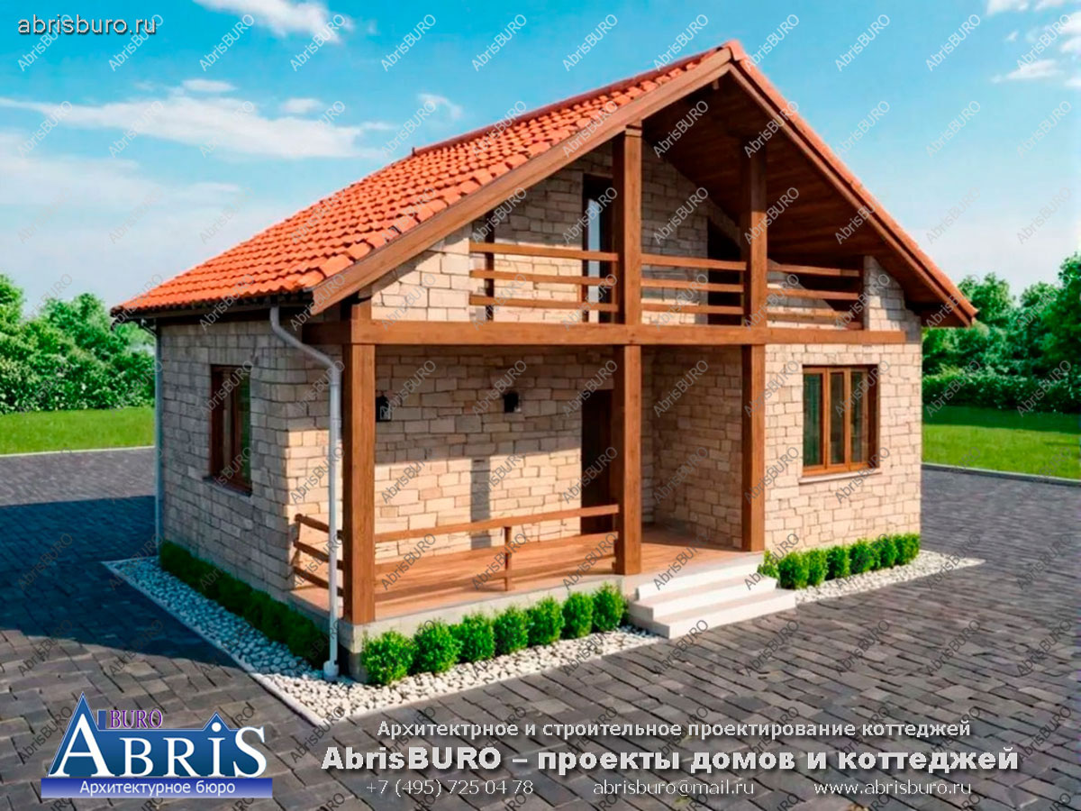 Проект мансардного дома K1254-138 с 3 спальнями, крыльцом и лоджией