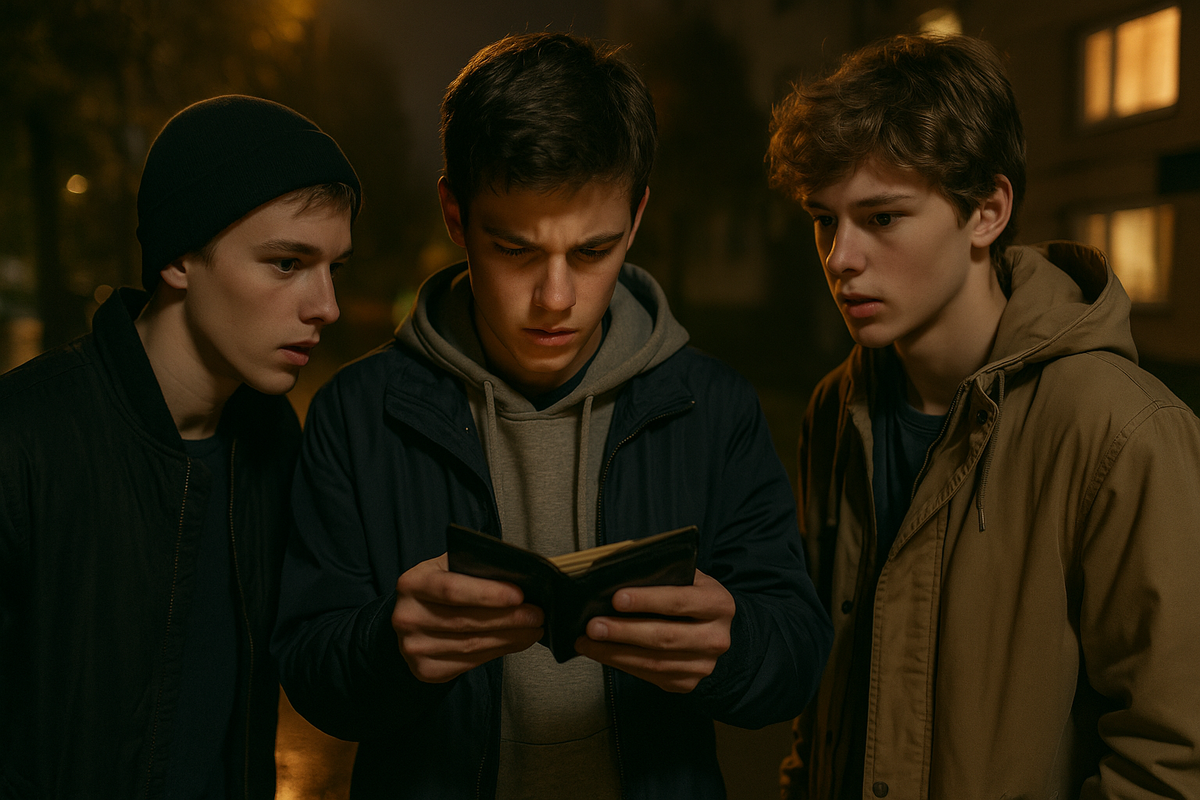 — Ты чего, святой? Кому вернуть? Ночью? На тротуар? Здесь камеры только в аптеке, а кошелёк, может, ещё час назад уронили. И вообще, если кто и потерял — сам виноват, нечего клювом щёлкать.