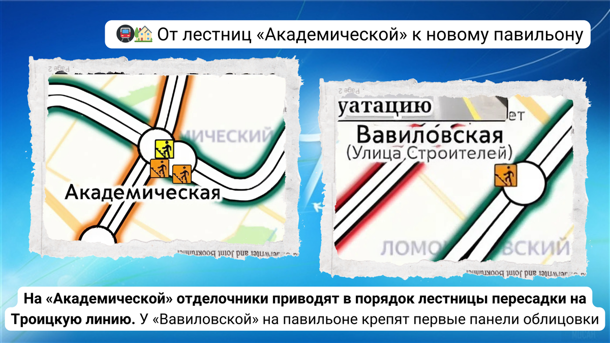 официальные отчеты. Давайте вместе разберемся, что же на самом деле происходит с нашей Москвой. Поехали? Продолжаются отделочные работы в центре платформы – на лестничных сходах пересадки на 🏡Троицкую линию. На стенах сходов монтируется витражное остекление и их подсветка. Началась подшивка гипсокартоном потолка над путями, монтируются светильники и противопожарные системы. Смонтировано остекление тамбура под лестницей – будущего укрытия для маломобильных групп населения в случае пожара. Во второй части покажем 🚇 станцию «Вавилов