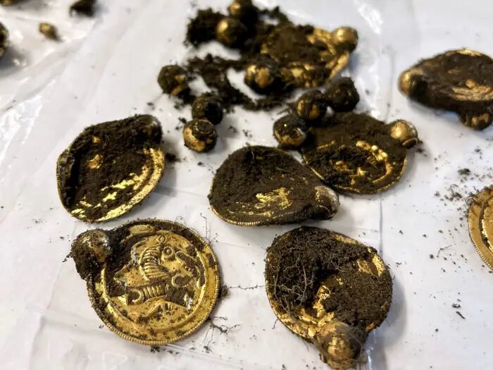 Эрленд Бор вышел из дома просто размяться. Врач велел ему больше двигаться, и 51-летний норвежец решил последовать совету по-своему. Он купил металлоискатель и начал обследовать окрестности вокруг своего дома в Реннесёе, неподалёку от Ставангера. Первые недели его находками были, в основном, ржавый металл, фольга, пробки от бутылок, да редкие современные монеты. В общем-то, обычная рутина начинающего поисковика, когда азарт есть, а находок почти нет. В один из таких выходов металлоискатель в очередной раз запищал, указывая на цель в земле. Судя по показаниям прибора, находка была на совсем небольшой глубине. Мужчина воткнул лопату в землю, обкопал участок и вывалил комок земли рядом. Он, конечно, не ожидал ничего интересного, поэтому, увидев россыпь блестящих жёлтых пластинок, подумал, что это обёртки от шоколадных монет или какая-то сувенирная бижутерия - слишком уж невероятно всё выглядело, - рассказывал он позже Университету Ставангера. Но никаким шоколадом и не пахло. Перед ним
