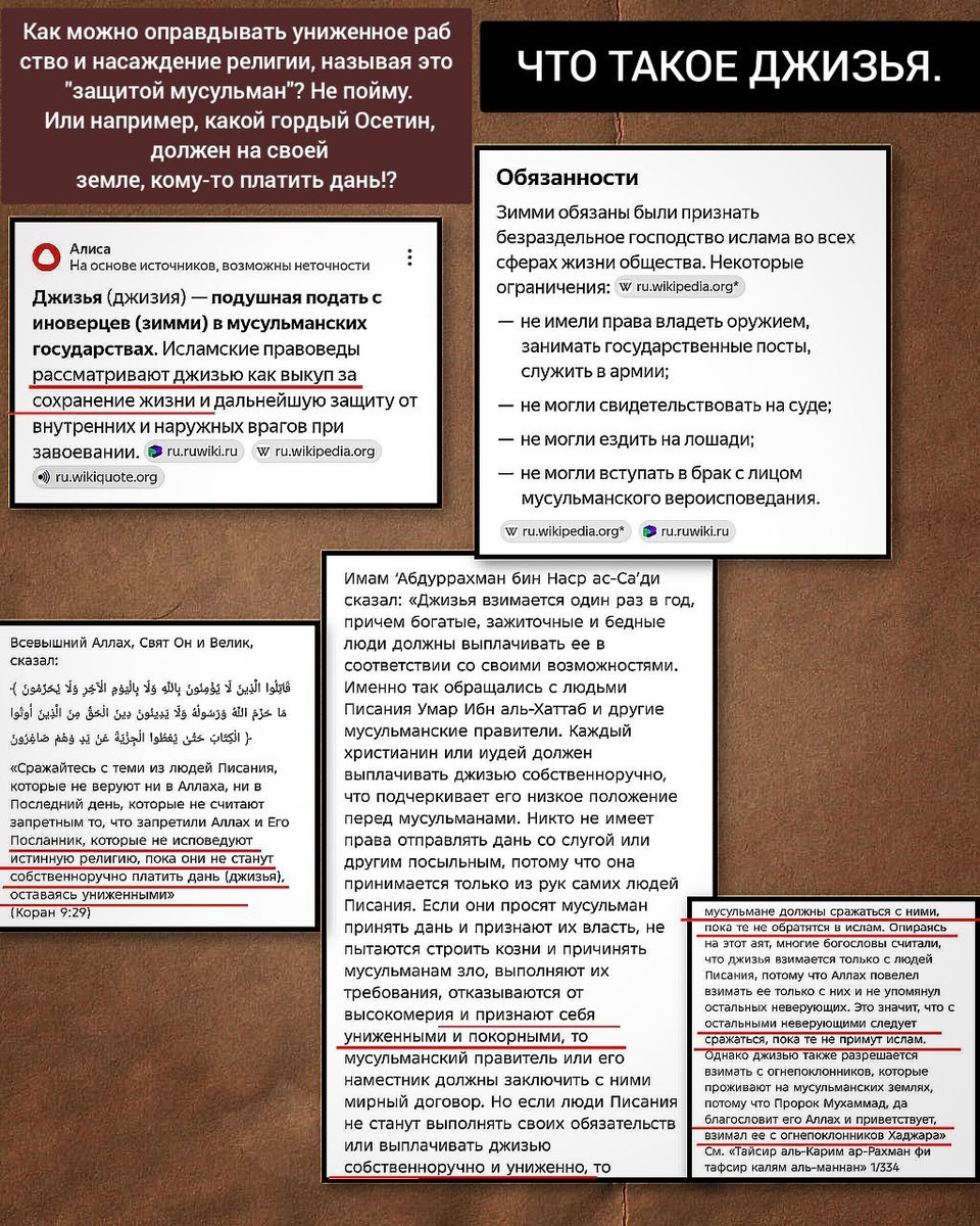 Всю нашу историю предков Алан, одни из заклятых врагов были Арабы со своей истинной религией, которые нас хотели истребить, а последний кто нас почти истребил, со своей "истиной" был Хромой Тимур. По истине нам несли только истинное однобожие, нам "безбожникам"))) Людям, которые имели древнюю, высочайшую культуру и искусство🤦♂️ До чего мы докатились , что оправдываем и что возвкличиваем🤦♂️