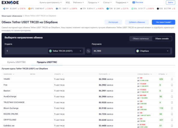 Перед тем как начать, зайдите на мониторинг Exnode. Это лучший способ выбрать безопасный обменник криптовалюты онлайн: вы видите курсы, резервы, рейтинг и реальные отзывы. Выберите направление — например, криптовалюта → банк РФ. Мониторинг автоматически покажет топ онлайн обменников криптовалют по вашему запросу.