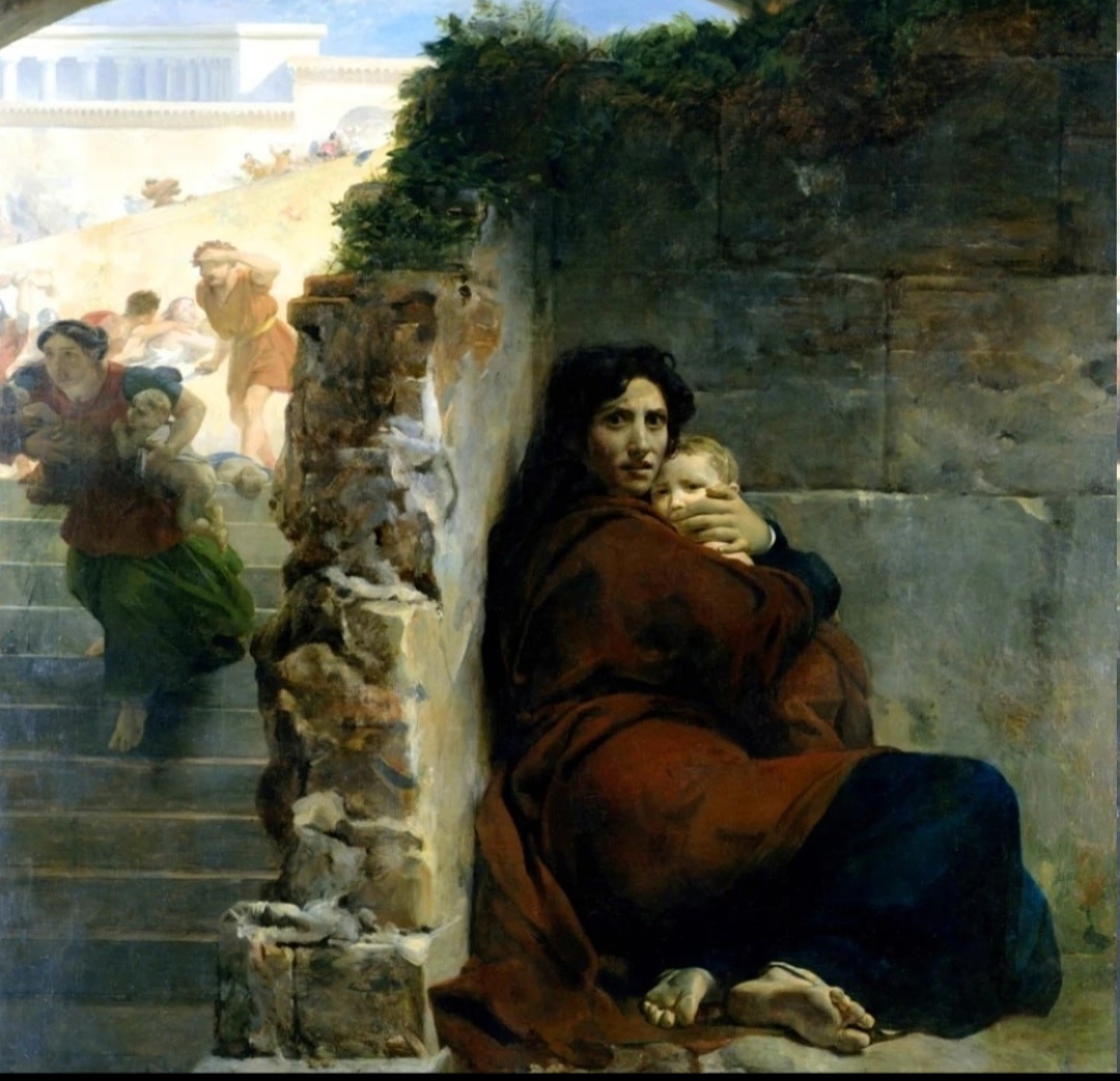 В сумрачных улочках Вифлеема разносится пронзительный, разрывающий душу плач. Стоны матерей, словно горькая песнь отчаяния, эхом отдаются от древних стен, вторя словам ветхозаветного пророчества. Ни один младенец, рождённый на рубеже эпох, не избежит кровавой участи — тень гибели уже накрывает город. В 1824 году французский мастер Леон Конье воплотил эту трагедию на холсте. Его «Избиение младенцев» — не просто картина, а распахнутая дверь в мир безутешного горя и безжалостной власти. Царь Ирод, едва услышав о рождении Мессии, ощутил, как в груди закипает ярость, а в душе поселяется ледяной страх. Трон, столь желанный и хрупкий, будто зашатался под ним. Сначала он избрал путь хитрости — пытался выведать, где скрывается Богомладенец, чтобы тихо, незаметно устранить угрозу. Но когда поиски обернулись пустотой, в сердце правителя окончательно воцарилась тьма. Согласно Евангелию от Матфея, слепой страх за своё владычество толкнул Ирода на чудовищный приказ: истребить всех мальчиков
